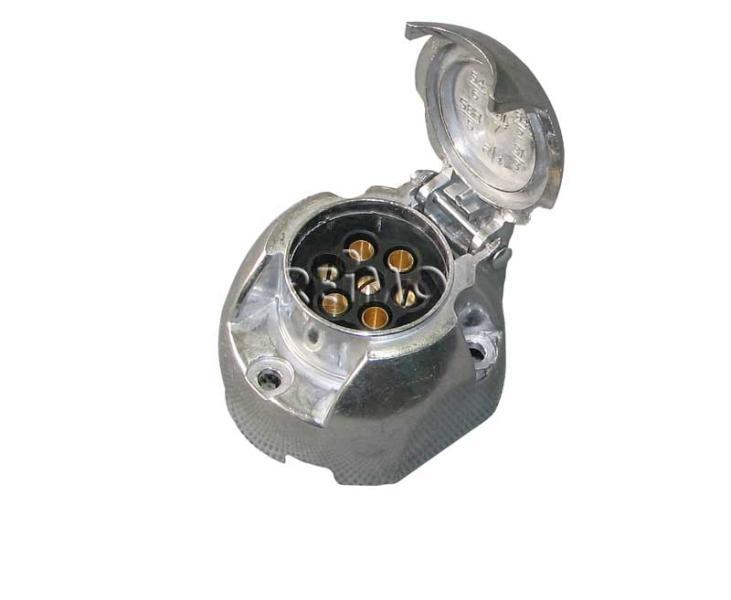 Robustní 7pólová zásuvka pro přívěs s odolným ocelovým krytem.