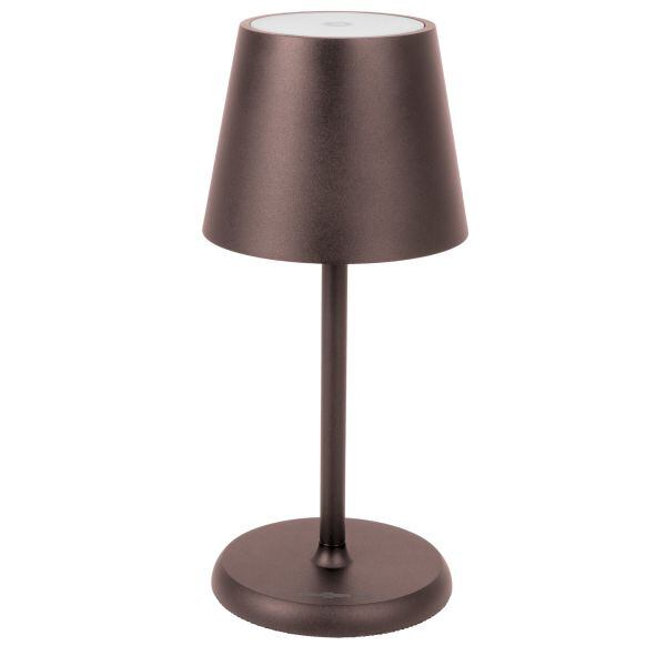 Venkovní stolní lampičkaDobíjecí akumulátorová stolní LED lampa Brunner Lucien poskytuje příjemné světlo díky teplému bílému LED světelnému zdroji. Lampa je vybavena regulací intenzity světla, o napájení se stará integrovaná lithium-iontová baterie (3,6 Ah, 3,7 V), kterou můžete kdykoli dobít pomocí dodaného USB kabelu. Díky baterii vydrží lampa svítit 16 až 24 hodin. Lampičku zapnete a vypnete jednoduše dotykem.Klíčové vlastnosti akumulátorové stolní LED lampy Brunner Lucien:Moderní a profesionálním vzhled, doplněný kovovým stínidlem.Vhodná pro venkovní použití.Provoz na baterii až 24 hodin, možnost dobíjení USB kabelem.Dotykové zapínání a vypínání, jas je možné regulovat.Parametry akumulátorové stolní LED lampy Brunner Lucien:barva: hnědá, černásvětelný tok: 200 lmjmenovitý výkon: 3 Wjmenovitý proud: 3600 mAmateriál: hliníkvýška: 25 cmprůměr: 11 cmhmotnost: 600 gvelikost balení: 31 × 14,5 × 13,5 cm
