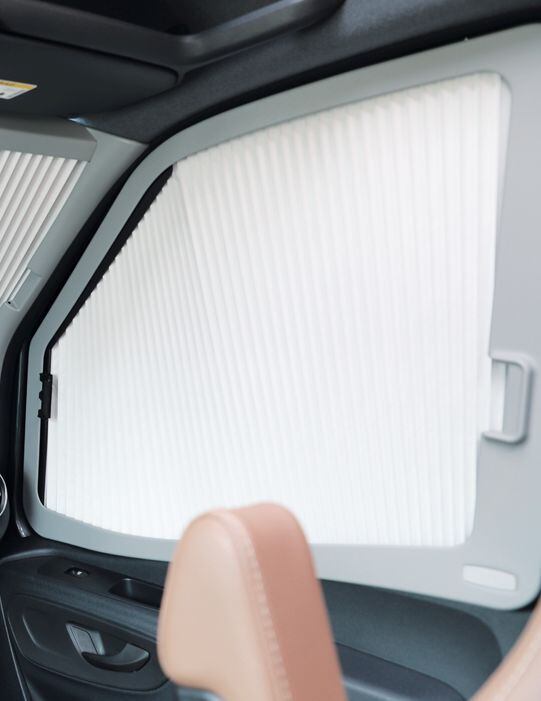 Zatemnění pro čelní okno dodávky Ford Transit Custom Plisovaná roleta Remis REMIfront IV ve světle šedé barvě je určena do předního okna kabiny obytné dodávky Ford Transit Custom. Na míru přizpůsobené řešení zatemnění pro kabinu řidiče chrání před zvědavými pohledy do vozidla a zároveň výrazně snižuje zahřívání nebo ochlazování vozidla. Rolety REMIfront se vyznačují vysokou kvalitou, jednoduchou montáží a robustním provedením. Díky vícevrstvému provedení mají tyto rolety výborné termoizolační vlastnosti. Jedná se o variantu bez dešťového senzoru. Klíčové vlastnosti rolety do čelního okna Remis REMIfront pro Ford Transit Custom bez senzoru: Vhodná pro Ford Transit Custom bez senzoru.Vyznačuje se vysokou kvalitou, jednoduchou montáží, bezúdržbovostí a robustností.Roleta má výborné termoizolační vlastnosti.Je vybavena zajištěním proti nechtěnému zatažení během jízdy.Ve staženém stavu není textilie téměř vidět a nezakrývá větrací otvory. Instalace rolet do předních oken: Systém zatemnění kabiny lze nainstalovat do vaší obytné dodávky dodatečně, montáž můžete provést sami.Instalace je velmi snadná: dělená přední roleta se upevňuje do upevňovacích bodů na A-sloupku.Pomocí trubkového systému je roleta vedena do středu čelního skla, zpětné zrcátko může zůstat na svém místě.Přední roleta je navíc vybavena bezpečnostním zámkovým systémem, který zabraňuje náhodnému otevření přední části za jízdy.Přední plisovaná roleta REMIfront IV není vhodná pro vozidla s úložným prostorem nad čelním sklem a pro vozy s integrovanými airbagy v A a B sloupcích. Parametry rolety do čelního okna Remis REMIfront pro Ford Transit Custom bez senzoru: pro vozidla: Ford Transit Custom, 2018–2023, bez senzorubarva: světle šedáhmotnost: 2,2 kg