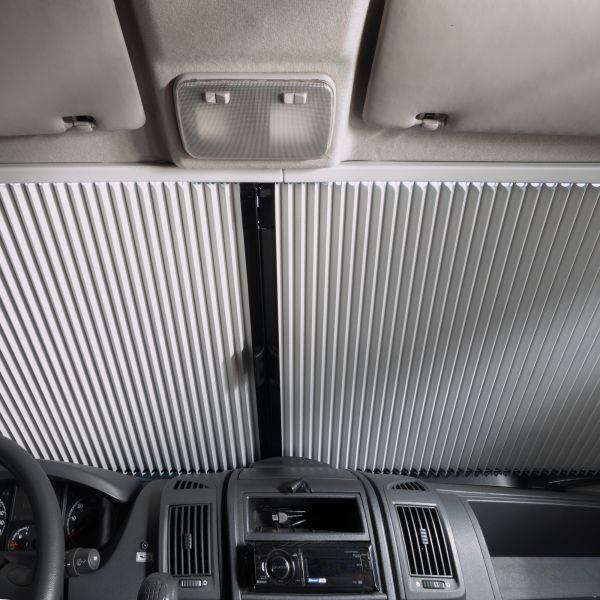 Roletka do čelního okna pro Mercedes SprinterPlisovaná roleta na přední sklo REMIfront III značky Remis je vhodná pro dodávky Mercedes-Benz Sprinter (verze s velkým senzorem). Na míru přizpůsobené řešení zatemnění pro kabinu řidiče chrání před zvědavými pohledy do vozidla a zároveň výrazně snižuje zahřívání nebo ochlazování vozidla.Robustní, vysoce kvalitní systém zatemnění REMIfront je bezúdržbový a je vyroben z materiálu odolného vůči světlu a nezakrývá průduchy ventilace.Klíčové vlastnosti čelní okenní rolety Remis REMIfront III:Vhodné pro obytné dodávky Mercedes-Benz Sprinter.Vysoká kvalita, robustní konstrukce, jednoduchá montáž.Není nutná údržba.Výborné termoizolační vlastnosti.Vybaveny zajištěním proti nechtěnému zatažení během jízdy.Ve staženém stavu není textilie téměř vidět.Instalace čelní okenní rolety Remis REMIfront III:Systém zatemnění kabiny lze nainstalovat do Vaší obytné dodávky dodatečně, montáž můžete provést sami.Instalace je velmi snadná: dělená přední roleta se upevňuje do upevňovacích bodů na A-sloupku.Pomocí trubkového systému je roleta vedena do středu čelního skla, zpětné zrcátko může zůstat na svém místě.Přední roleta je navíc vybavena bezpečnostním zámkovým systémem, který zabraňuje náhodnému otevření přední části za jízdy.Roletky REMIfront nelze použít ve vozidlech s airbagy integrovanými v A a B sloupcích. verze s velkým senzoremParametry čelní okenní rolety Remis REMIfront III:pro vozidla: Mercedes Sprinter od roku výroby 03/2018, verze s velkým senzorembarva: šedározměry balení: 108 x 26 x 17 cmhmotnost: 3 kg