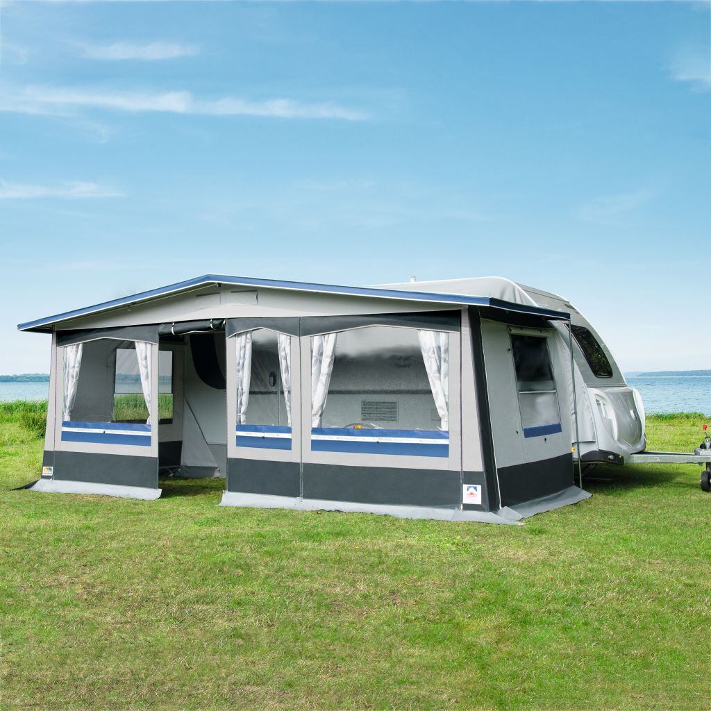Celoroční předstan GrönlandCeloroční předstan Hahn Zelte Grönland s hloubkou 280 cm je ideální pro všechna Vaše dobrodružství v přírodě bez ohledu na roční období. Jednotlivé díly stanu lze částečně složit nebo zcela odepnout, takže z předstanu během krátkého okamžiku vytvoříte otevřenou verandu. Stanové díly jsou připevněny suchým zipem. Umístění jednotlivých dílů lze navíc různě kombinovat. Pro ještě lepší stabilizaci už tak odolného předstanu při extrémních povětrnostních podmínkách, doporučujeme dokoupit sadu bouřkových tyči či sadu bouřkových popruhů (nabídku doplňků najdete v příslušenství).Předstan Grönland se ke karavanu připojuje standardním způsobem, tedy nasunutím do kedrové lišty. Pro zvolení správné velikosti předstanu je nutné změřit obvod karavanu od země k zemi (rozměr A).Klíčové vlastnosti předstanu Hahn Zelte Grönland:Vysoce kvalitní materiál zaručuje dlouhou životnost.Stanová konstrukce z extra silných ocelových tyčí ø 32 mm.Vysoká stabilita a inovativní design, velká variabilitaVelká okna se závěsy a vnějším zatemněním, rolovatelné vchodové dveře.Odolný vůči povětrnostním vlivům, snadno omyvatelný.Střecha stanu i jednotlivé stěny jsou vyrobeny ze silného PVC.Obsah balení:stanocelové tyče ø 32 mmzávěsy krycí plachta podvozkunapínací materiáltransportní taškaParametry předstanu Hahn Zelte Grönland:barva: šedámateriál: 100 % PVC Polyvinylchloridkonstrukce: ocelocelové tyče ø 32 mm sestávající z: 5 střešních tyčí, 5 sklopných tyčí, baldachýnových tyčíROZMĚR A (OBVOD)HLOUBKAROZMĚRY BALENÍHMOTNOST841 – 875 cm280 cm120 x 67 x 40 cm72 kg876 – 910 cm280 cm120 x 67 x 40 cm74 kg894 – 929 cm280 cm120 x 80 x 80 cm76 kg911 – 945 cm280 cm120 x 45 x 40 cm76 kg930 – 964 cm280 cm120 x 45 x 40 cm77 kg946 – 980 cm280 cm120 x 45 x 40 cm78 kg965 – 999 cm280 cm120 x 45 x 40 cm79 kg981 – 1015 cm280 cm120 x 45 x 40 cm80 kg1000 – 1034 cm280 cm120 x 45 x 40 cm81 kg1016 – 1050 cm280 cm120 x 45 x 40 cm82 kg1035 – 1069 cm280 cm120 x 67 x 40 cm83 kg1051 – 1085 cm280 cm120 x 45 x 40 cm84 kg1086 – 1120 cm280 cm120 x 45 x 40 cm86 kg1121 – 1155 cm280 cm120 x 67 x 40 cm88 kg1156 – 1190 cm280 cm120 x 67 x 40 cm90 kg1191 – 1224 cm280 cm120 x 80 x 80 cm92 kgVideo: