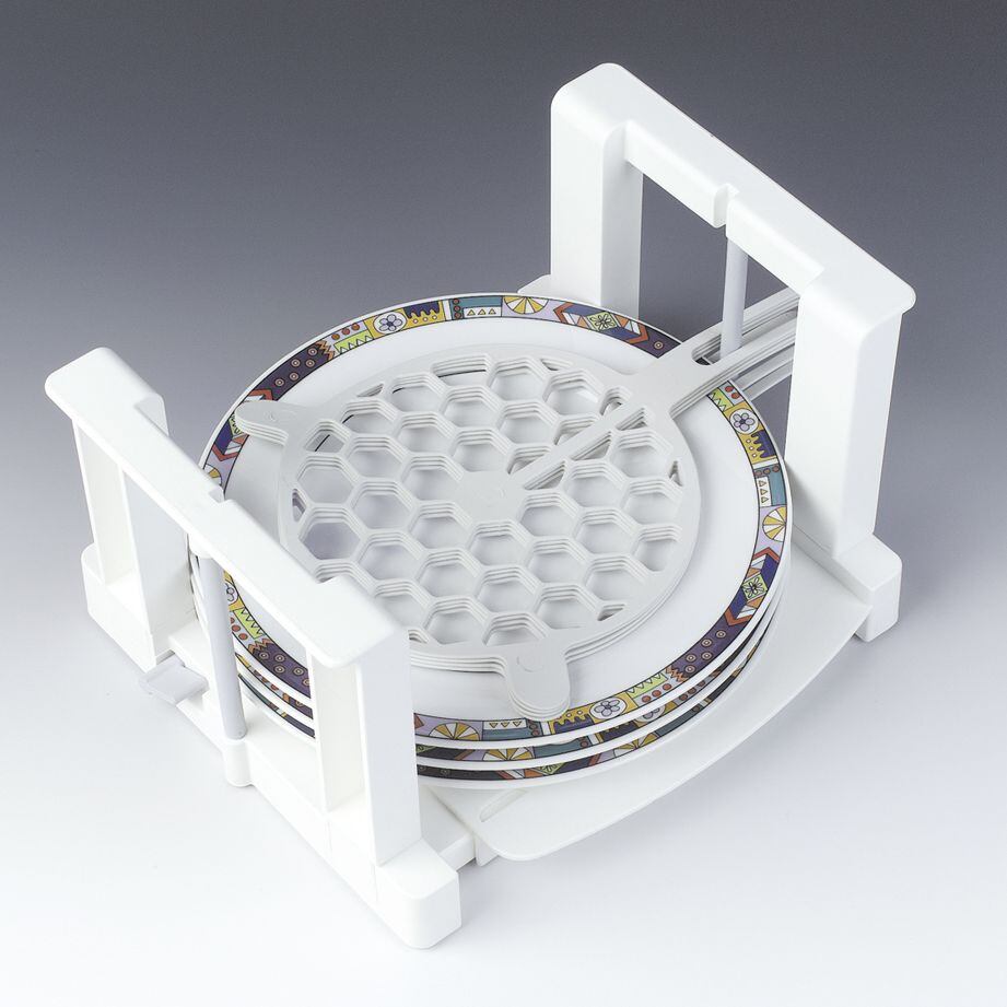 Roztahovací úchyt na talíře FroliDržák talířů Froli je díky své důmyslné konstrukci velmi odolný vůči převrácení, udrží tak Vaše talíře v bezpečí za jakékoliv situace. Je opatřen 5 gumovými podložkami, aby se o sebe talíře za jízdy netřely. Produkt nabízíme o maximální kapacitě 6 nebo 8 talířů.