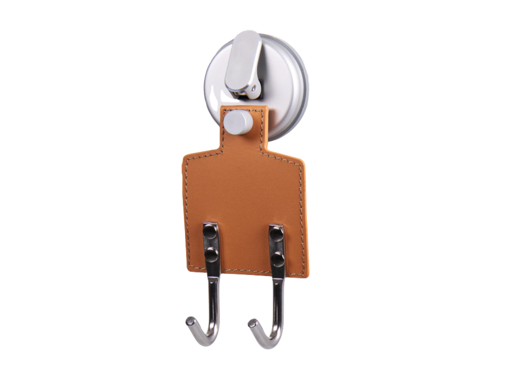 - Držák je elegantně připevněn k imitaci kůže a přísavka v chromové barvě dotváří dokonalý vzhled