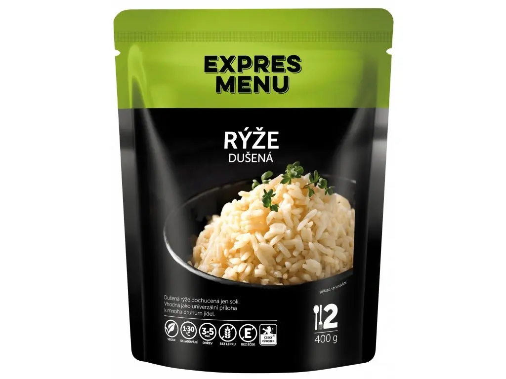 Jelení ragú na červeném víně – hotové jídlo, které stačí jen ohřátPokud máte rádi exotické a výrazné chuti, jelení ragú je přímo pro Vás. Dušené na červeném víně s kořenovou zeleninou a dochucené divokým kořením a rybízovou marmeládou. Sladkokyselá svěžest rybízové marmelády se skvěle doplňuje s aroma divokého koření, což vytváří omáčku, která je velmi chutná a výrazná. Vychutnejte si luxusní jídlo i během kempování nebo stanování.Vlastnosti jeleního ragú od EXPRES MENUbalení: 600 g (2 porce)složení bez lepku a bez éčekhotové sterilované jídlo od české rodinné firmy z Trutnovasnadná přípravaideální pro přípravu na cestáchSloženíjelení maso (33 %), hovězí vývar (voda, hovězí maso a kosti), kořenová zelenina (mrkev, celer, pastinák), červené víno, rajčatový protlak (voda, rajčatový protlak, sůl), cibule, řepkový olej, rýžová mouka, kukuřičná mouka, rybízová marmeláda (rybíz, cukr, pektin), cukr, citron, sůl kamenná, divoké kořeníPříprava jídlaJelení ragú EXPRES MENU můžete připravit třemi způsoby:Sáček s jídlem vložte do mikrovlnné trouby a ohřívejte zhruba 2 až 3 minuty při výkonu300 W nebo dokud nebude jídlo teplé. Při ohřevu buďte opatrní, delší doba ohřevu může vést k deformaci obalu.V další variantě stačí vyprázdnit obsah sáčku na talíř a ohřívejte v mikrovlnné troubě zhruba 2 minuty.Pokud nemáte k dispozici mikrovlnnou troubu, stačí sáčky vložit do hrnce s vařící vodou zhruba na 10 minut. Před podáváním jídla promačkejte.SkladováníVýrobek skladujte při teplotě od +1 °C do +30 °C. Po otevření skladujte v chladničce a spotřebujte do 48 hodin.Datum spotřebyMinimální trvanlivost je uvedena na obalu. Obvyklé datum spotřeby jsou 2 roky.Nutriční hodnoty na 100 gEnergetická hodnota:348 kJEnergetická hodnota:83 kcalTuky:2 gNasycené mastné kyseliny:0,1 gSacharidy:9,6 gz toho cukry:5,4 gBílkoviny:7,8 gVláknina:0,6 gSůl:1,1 g