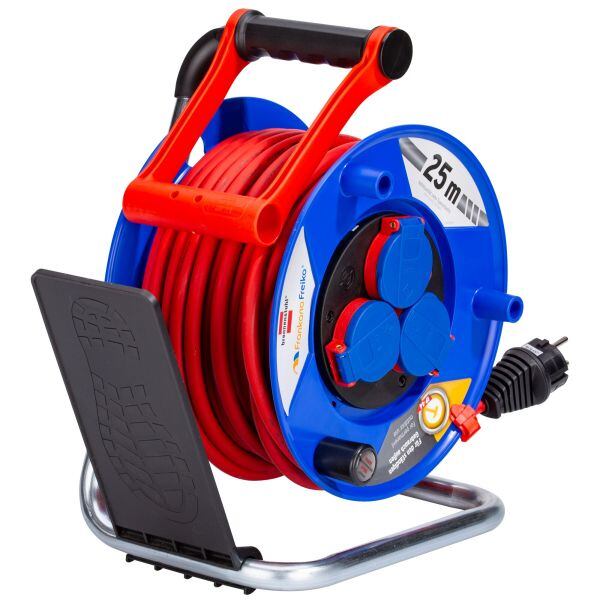 Bezpečnostní naviják s CEE zástrčkouKabelový buben Brennenstuhl se zásuvkami Schuko je určen pro bezpečné a pohodlné napájení na stavbách, v dílnách, kempech i na zahradě. Je vybaven 25 metry gumového kabelu H07RN-F 3G1,5 mm², který je vysoce odolný vůči olejům, vlhkosti a mechanickému namáhání. Těleso bubnu je kompaktní a extrémně odolné, s integrovanou ochranou proti přehřátí a přetížení, doplněnou o světelnou kontrolku. Naviják má 3 uzemněné Schuko zásuvky se samouzavíracími krytkami, chráněné proti stříkající vodě dle IP44. Inovativní rukojeť Cablepilot usnadňuje vedení kabelu při navíjení a odvíjení, zabraňuje kroucení a umožňuje pohodlnou přepravu jednou rukou a integrovaný držák pro zajištění bubnu nohou proti pohybu při odvíjení.Klíčové vlastnosti kabelového bubnu Brennenstuhl se zásuvkami Schuko:Délka kabelu 25 m. Pro dostatečný dosah na pracovišti nebo v kempu.Kabel H07RN-F 3G1,5 mm². Odolný proti olejům, vhodný pro profesionální použití.3 uzemněné Schuko zásuvky. Kryté samouzavíracími víčky pro vyšší bezpečnost.Třída ochrany IP44. Chrání proti stříkající vodě a prachu – ideální pro venkovní použití.Ochrana proti přehřátí a přetížení. Se světelnou signalizací.Rukojeť Cablepilot. Umožňuje snadné navíjení i přepravu.Integrovaný držák pro zajištění bubnu nohou proti pohybu při odvíjení.Kompaktní těleso bubnu. Stabilní, pevné a praktické pro časté použití.Napětí 230 V, proud 16 A. Vhodné pro většinu elektrického nářadí a zařízení.Parametry kabelového bubnu Brennenstuhl se zásuvkami Schuko:barva: červená, modrátřída ochrany IP: IP44délka kabelu: 25 mjmenovité napětí: 230 Vjmenovitý proud: 16 Arozměry (Š × V × H): 25 × 34 × 19 cmprůměr: 24 cmhmotnost: 4,9 kgrozměry balení (Š × V × H): 34 × 26 × 20 cmVideo: