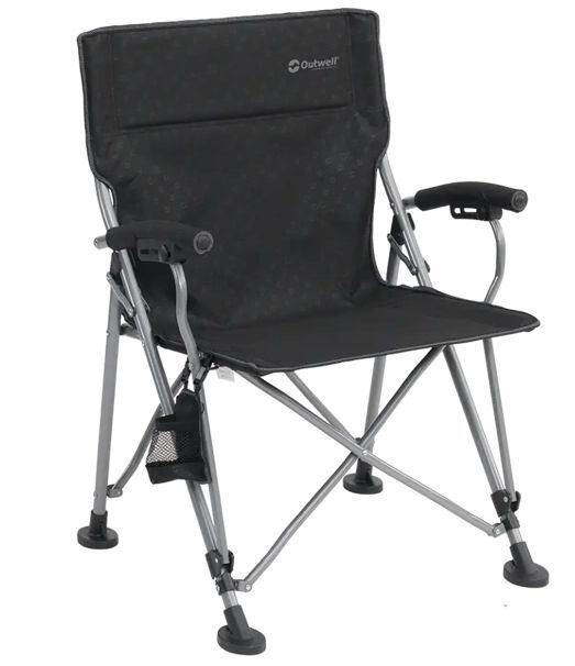 Pohodlná skládací židle s područkamiKempingová skládací židle Outwell Goya najde své využití na Vašich cestách do přírody, při kempování, ale je vhodná i pro příležitostné sezení na zahradě. Pohodlná židle s područkami kombinuje stylový design s praktickou funkčností. Polyesterový potah sedadla a opěradla i robustní ocelová konstrukce zajišťují stabilitu a odolnost. Židli sestavíte a složíte během několika sekund.Klíčové vlastnosti kempingové skládací židle Outwell Goya:Robustní a odolná židle s opěrkami rukou.Konstrukce z vysoce pevné oceli.K sestavení není nutná montáž.Snadno se sestavuje a přenáší, složená zabere minimum místa.Včetně tašky pro skladování a přepravu.Outwell GoyaParametry kempingové skládací židle Outwell Goya:barva potahu: černámateriál potahu: 300 x 600D recyklovaný a embosovaný 100% polyesterbarva rámu: šedámateriál rámu: ocel s práškovým nástřikemhmotnost: 4,5 kgrozměry (Š x H x V): 68 x 63 x 90 cmrozměry balení: 10 x 28 x 105 cmvýška sedadla: 46 cmmaximální zatížení: 125 kg