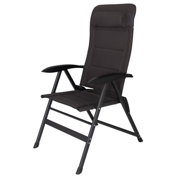 Skládací kempingové křeslo Kendal Canyon HighKempingové křeslo Eurotrail Kendal Canyon High zajistí pohodlné posezení v kempu i na zahradě. Polohovatelné vysoké opěradlo a široká plocha na sezení nabízí optimální komfort. Robustní hliníkový U-rám zabraňuje zaboření křesla do měkké půdy. Kempingové křeslo Eurotrail Kendal nabízí 7 různých nastavitelných poloh, které zvyšují uživatelský komfort.Klíčové vlastnosti kempingového křesla Eurotrail Kendal Canyon High:Pevná hliníková konstrukce.Polstrovaný Air-mesh materiál.Sedmistupňové polohování opěradla.Maximální nosnost 120 kg.Parametry kempingového křesla Eurotrail Kendal Canyon High:barva: antracitnosnost: 120 kgvýška opěradla: 78 cmvýška sedadla: 46 cmsedací plocha: 52 × 48 cmmateriál textilie: 100% PES polyestermateriál rámu: hliníkrozměry (V × Š × H): 120 × 48 × 42 cmvelikost balení: 100 × 61 × 11 cmhmotnost: 4,6 kg