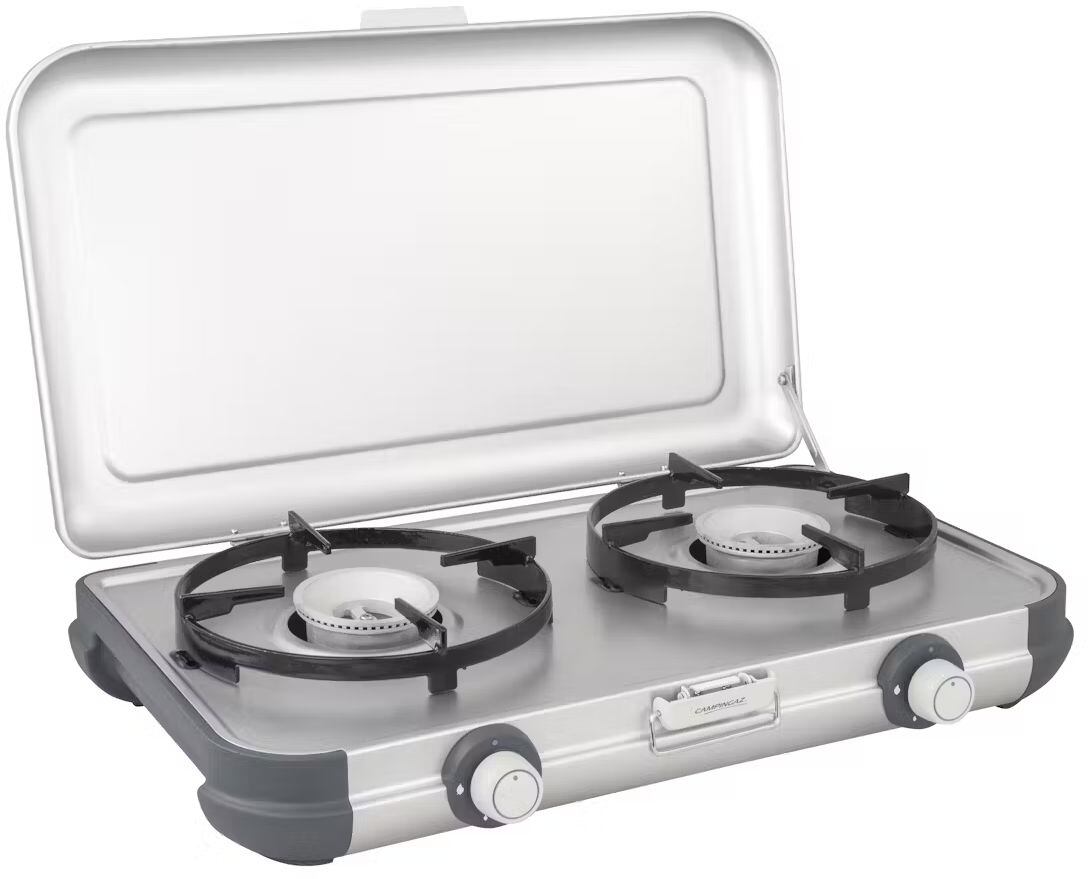 Lehký a kompaktní dvojvařič na cestyCampingaz Camping Kitchen 2 Maxi je ideální přenosný kempingový vařič pro kratší cesty do přírody i pro delší pobyt v kempu.Lehký a snadno přenosný vařič se dvěma hořáky s kompaktním designem a zabudovanými držadly pro přenášení umožňuje úsporné skladování v autě nebo obytném voze. Vařič má také žáruvzdorné držáky na hrnce ze smaltované oceli, které slouží také jako ochrana proti větru. Držáky hrnců lze snadno vyjmout pro rychlé čištění.Cestovní vařič Camping Kitchen™ 2 Maxi má dva nezávislé hořáky, které umožňují individuální regulaci tepla. Díky podpěrám na pánve o průměru 28 cm můžete používat i větší nádobí pro přípravu jídla. Inovativní technologie hořáků Flameguard™ zaručuje optimální ochranu plamene i ve větrném počasí.Klíčové vlastnosti sporáku Campingaz Camping Kitchen™ 2 Maxi:Velká varná deska pro hrnce a pánve do ø 28 cm.Flameguard™ pro optimální ochranu plamene ve větru.Samostatné piezoelektrické zapalování.Vařič lze uzavřít pro skladování a přepravu.Mimořádně odolný lak varné desky a větrné zábrany.Vhodný i pro vysoké teploty.Snadné čištění díky odnímatelné odkapávací misce a větrné cloně.Camping Kitchen 2Parametry:zdroj paliva: lahve R 907, R 904spotřeba plynu: 260 g/hvýkon: 3600 Wbarva: stříbrná, černápočet hořáků: 2materiál: ocelrozměry (Š x V x H): 53 cm x 39,8 cm x 38,8 cmvelikost balení: 53 x 36 x 11 cmhmotnost: 4.4 kg