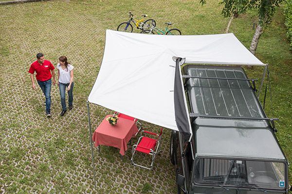 Manuální markýza Fiamma F35Pro Univerzální a kompaktní markýza Fiamma F35Pro je určena pro instalaci na dodávky, obytná auta nebo karavany. Tuto výsuvnou střechu v modré barvě, se šedým pouzdrem, si oblíbíte díky její spolehlivosti, odolnosti a jednoduchosti ovládání. Markýzu můžete jednoduše připevnit do kedrové lišty, nebo pomocí montážních adaptérů na střechu, nebo bok vozidla. Montážní adaptéry je třeba objednat samostatně pro konkrétní typ vozidla. Kompaktní pouzdro markýzy z mimořádně pevné, superlehké hliníkové slitiny Alu-Lite poskytuje ochranu plátnu svinutému uvnitř. Vícevrstvé oboustranně potištěné plátno z vinylu odolného vodě a UV záření je navinuto na navíjecím válci. Ve válci jsou integrovány teleskopické nohy a horizontální ramena. Plátno se jednoduše ručně odvíjí z navíjecího válce. Ve válci markýzy jsou 2 kedrové drážky pro instalaci přední stínící stěny a jiného příslušenství. Klíčové vlastnosti markýzy Fiamma F35Pro: Vhodná k instalaci na dodávku, obytné auto nebo karavan, do kedrové lišty, na bok, nebo na střechu.Pouzdro ze superlehké hliníkové slitiny Alu-Lite.Vinylové plátno je odolné proti vodě a UV záření, snadno se čistí a udržuje.Jednoduché ruční rozvinutí a svinutí plátna.Nohy a horizontální ramena jsou umístěny v navíjecím válci.Válec se dvěma drážkami pro nasunutí příslušenství. Manipulace při rozložení a složení markýzy: skládání a rozkládání Obsah balení: markýza4× kolík pro upnutí nohou a napínacích lanek k zemi2× napínací lankospojovací materiál Parametry markýzy Fiamma F35Pro: typ instalaceboční, střešní, do kedrové lištypro vozidlakaravany, obytné vozy, obytné dodávkypouzdro (barva, materiál)šedá (Titanium), hliníkplátno (barva, materiál)modrá (Royal Blue), vinyl rozměry MODELDÉLKA MARKÝZY (A)DÉLKA PLÁTNA (B)VÝSUV (C)max. výška (D)zastíněná PLOCHAHMOTNOSTF35Pro 180183 cm162 cm180 cm195 cm2,9 m²8,5 kgF35Pro 220223 cm202 cm225 cm225 cm4,5 m²10,5 kgF35Pro 250253 cm232 cm5,2 m²11,5 kgF35Pro 270273 cm254 cm5,7 m²13 kgF35Pro 300303 cm282 cm6,4 m²14 kg Samostatně je třeba objednat adaptéry pro montáž na konkrétní typ vozidla (v kategorii Adaptéry a na záložce Příslušenství).Model F35Pro 270 a 300 je možno doplnit rozpěrnou tyčí (rafterem) pro dodatečné napnutí plátna.K markýze je možné dokoupit kompletní stan pro vytvoření uzavřeného prostoru nebo boční či přední stanové díly.