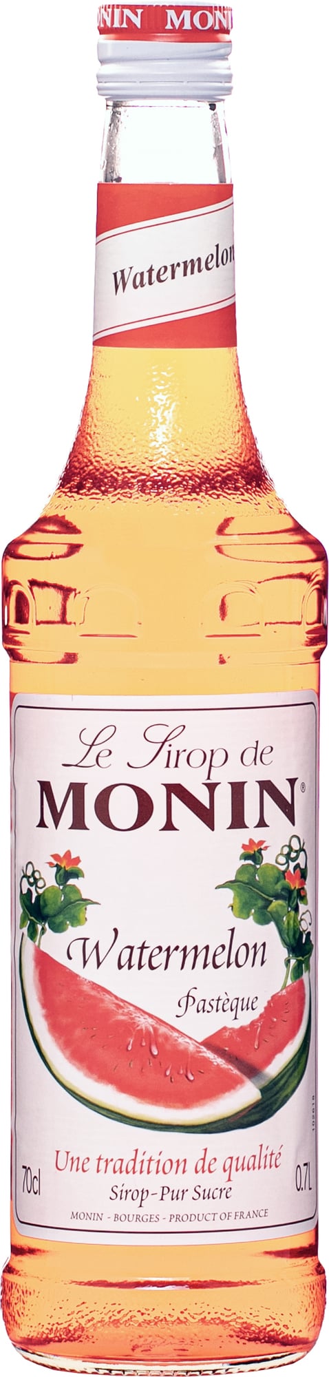 Monin Watermelon dodává vaším drinkem, limonádám, dezertem exotickou a svěží chuť vodního melounu.