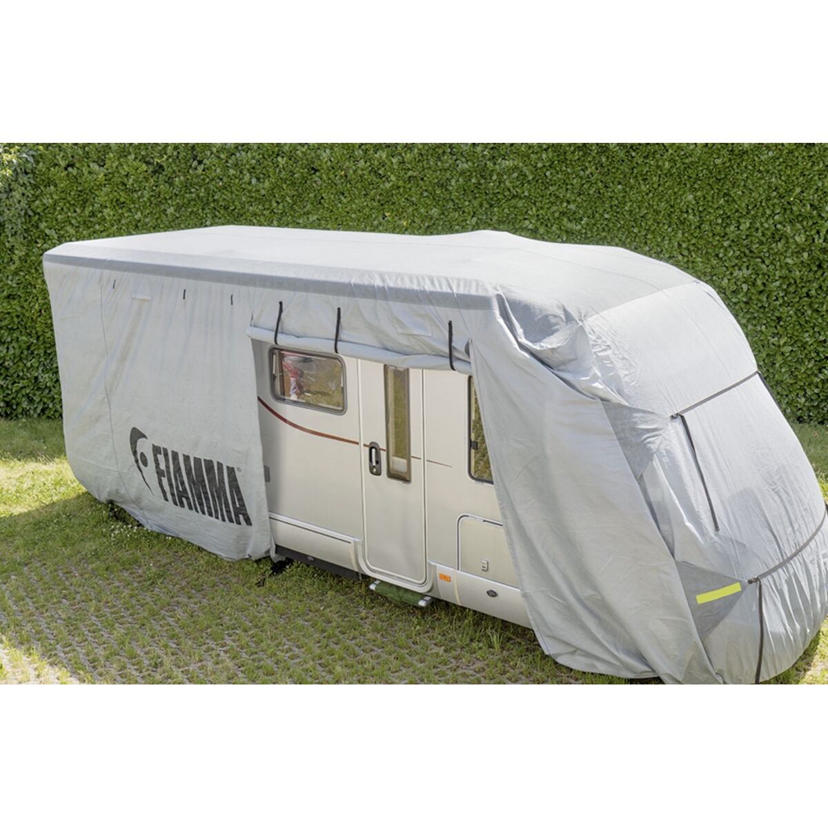 Univerzální ochranná plachta na karavan či obytné auto Dopřejte svému karavanu nebo obytnému vozu dostatečnou ochranu v momentech, kdy zrovna necestujete! Plachta Fiamma Premium ochrání vaše vozidlo před nepříznivým počasím, prachem, znečištěním a špínou. Klíčové vlastnosti ochranné plachty Fiamma Premium pro karavany a obytné vozy: Chrání před sluncem a UV zářením.Perfektně se přizpůsobí, díky novému systému utahování popruhu.Je dokonale prodyšná a má větrací otvory. Funkce: 4 plastové přezky pro upevnění spodní částisuchý zip pro zajištění bočních panelů6 zipů pro snadný přístupuzamykací systém s plastovými přezkami a reflexními proužky Parametry ochranné plachty Fiamma Premium pro karavany a obytné vozy: K dispozici ve dvou verzích:M: pro karavany do 7,1 m (rozměry (D × Š × V): 7,16 × 2,59 × 2,74 m)L: pro karavany do 8 m (rozměry (D × Š × V): 8,08 × 2,59 × 2,74 m)