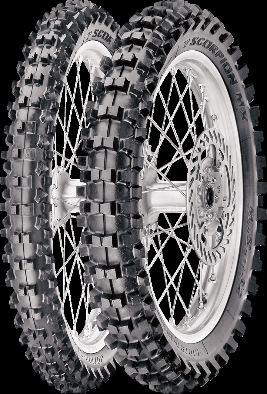 Efektivní ve všech podmínkách použití: při soutěžích, tréninku nebo jen pro zábavu! Vynikající trakce zaručující maximální přenos síly na zem. Uspořádání bloků opitimizované pro zlepšení brzdné stability a boční přilnavosti v zatáčkách. Přední boční hroty zaručují větší přesnost držení stopy v zatáčkách. Spolehlivost výkonu i v extrémních podmínkách. Dezén a směs běhounu byly vyvinuty za přispění nejprestižnějších hráčů v soutěžích MX.Přímo vyvinutý z know-how společnosti Pirelli v nejprestižnějších motokrosových šampionátechNová přední pneumatika pro silnější brzdění a snazší vjezd do zatáčekNová zadní pneumatika se zvýšenou trakcí při holeshot (startu) a při výjezdu ze zatáčekRozšířená všestrannost také na středně tvrdém povrchuDesign bočnice s vysokou viditelnostíZadní motocyklová pneumatika o průměru 19 palců, široká 110 milimetrů, s profilem 90 (výška bočnice 99 mm). Index nosnosti 62 odpovídá zátěži 265 kg na jednu pneumatiku. Pneumatika je určena pro rychlosti do 130 km/h. Pozor, jedná se o dušovou pneumatiku, nelze ji bez použití duše nahustit.Pneu-Kvalitně.cz – Váš kvalitní dodavatel pneumatik SCORPION™ MX32™ MID SOFT v Brně. Značka Pirelli- Značku Pirelli založil Giovanni Battista Pirelli již v roce 1922. Nyní patří do desítky největších globální výrobců pneumatik. Pirelli je oficiální dodavatel pneumatik pro Formuli 1 a obouvá je mnoho nových sportovních vozidel.