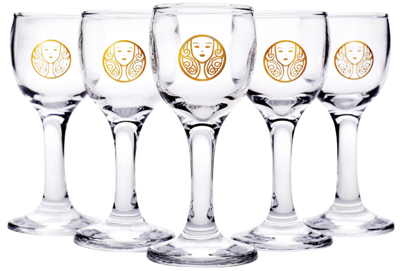 Sada šesti originálních likérových skleniček k Poděbradské samičce.