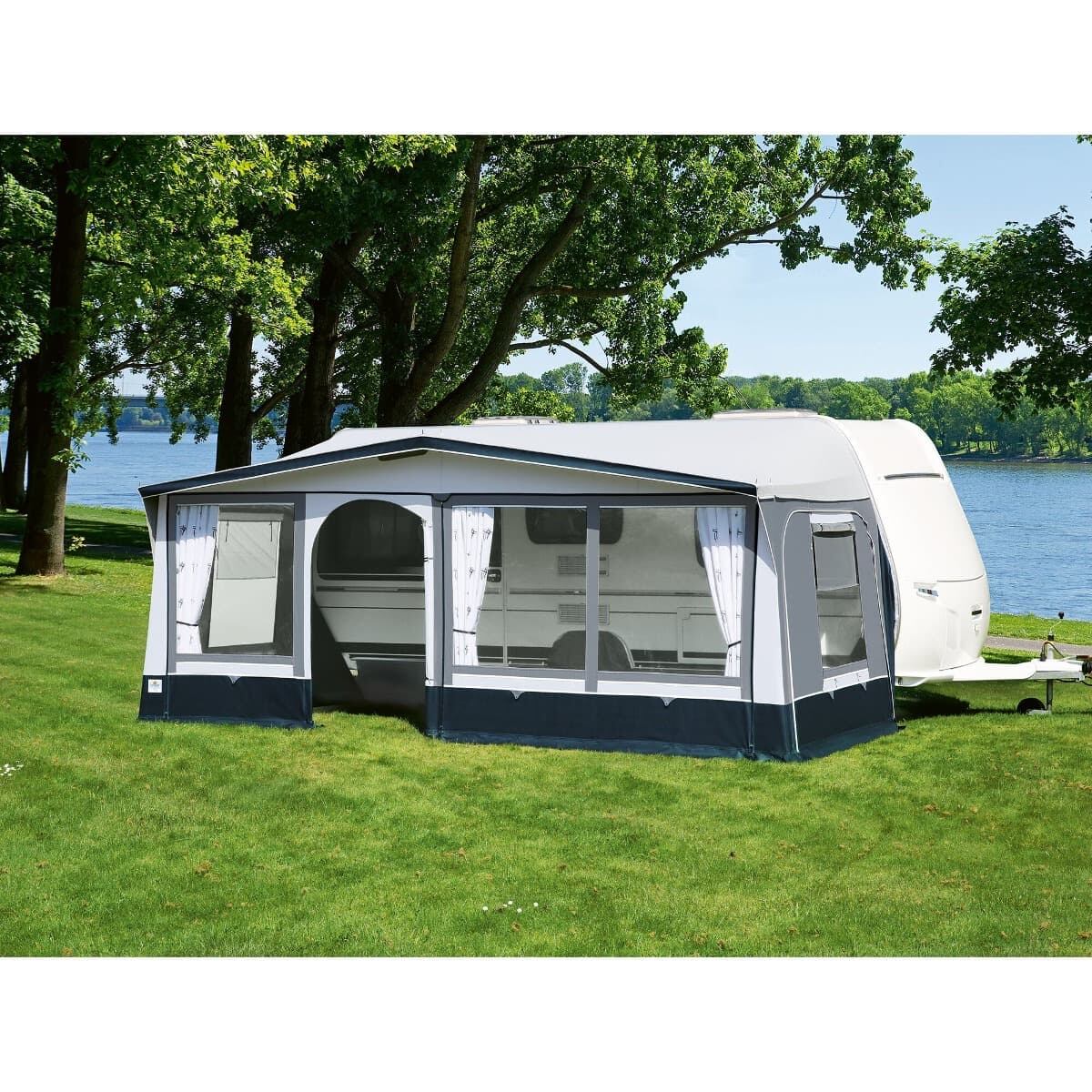 Pětidílný předstan ke karavanu Brand ComoPředstan ke karavanu Brand Como se vyznačuje vysokou flexibilitou, díky pěti samostatným dílům máte široké možnosti využití. Manipulace je vzhledem k velikosti stanu relativně snadná a montáž i demontáž nekomplikovaná. Odolné zipy a vysoce kvalitní materiál navíc zaručují velkou odolnost. Stan se hodí především pro vícedenní kempování ať už s rodinou nebo přáteli.Klíčové vlastnosti předstanu Brand Como:Montáž i demontáž bez očekávaných komplikací.Přední stěna je z venku potažena tak, aby bylo uvnitř stanu příjemné klima.Z předstanu lze snadno vytvořit otevřenou verandu sklopením přední stěny.Vchodové dveře lez umístit vlevo i vpravo.Boční stěny jsou vybaveny dveřmi a velkými okny.Postranní díly jsou odnímatelné.Zipy jsou chráněny látkovými potahy.Střecha předstanu je bezešvá s vnější povrchovou metalickou úpravou.Vnitřní potisk povrchu snižuje kondenzaci páry.Plátno čelní a boční stěny je vyrobeno z vysoce kvalitního materiálu TC-Touring 180 a střecha z materiálu TC-Touring 240.Obsah balení:upínací materiálpodlahová suknězávěsytyčekryt podběhu kolastanParametry předstanu Brand Como:materiál: 100 % PES polyestervelikost balení: 116 x 30 x 80 cmhloubka: 240 cmhmotnost: 35,9 – 48,5 kg (dle velikosti)tyče: ocel, průměr 25 mmbarva: šedáTabulka velikostí předstanu Brand Como:Rozměr A (obvod):Hloubka:Hmotnost:824 – 949 cm240 cm35,9 kg850 – 876 cm240 cm36,4 kg877 – 897 cm240 cm44,5 kg898 – 917 cm240 cm45 kg918 – 938 cm240 cm45,5 kg939 – 958 cm240 cm46,5 kg959 – 977 cm240 cm46,5 kg978 – 1001 cm240 cm47 kg1002 – 1025 cm240 cm47,5 kg1026 – 1051 cm240 cm48 kg1052 – 1075 cm240 cm48,5 kg