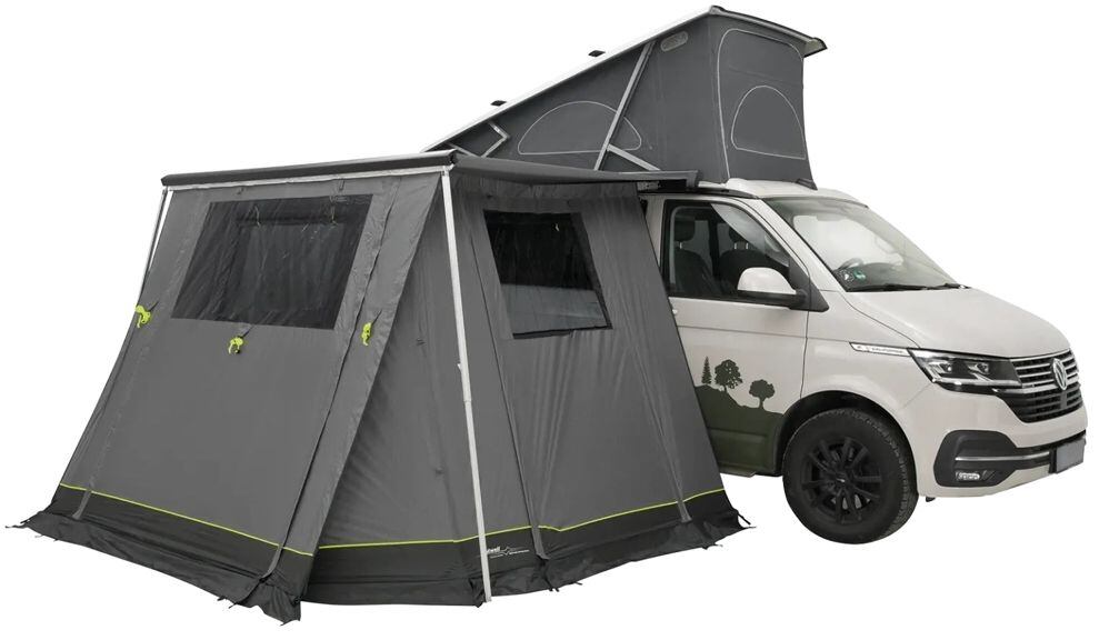 Předstan Reimo na zadní dveře Toyota HiacePředstan Reimo pro zadní dveře Toyota Hiace nabízí praktické řešení pro kempování, úschovu jízdních kol a další aktivity, díky svému obzvláště velkému interiéru. Tento stan se snadno instaluje přetažením přes otevřené dveře zavazadlového prostoru a připevněním k zemi. Klíčové vlastnosti předstanu Reimo pro Toyotu HiaceProstorný interiér je ideální pro kempování, skladování jízdních kol a další aktivity.Jednoduchá instalace. Stan se jednoduše přetáhne přes otevřené dveře zavazadlového prostoru a připevní k zemi, což umožňuje rychlou a snadnou montáž.Zadní stěna má okénko s moskytiérou a může být také použita jako sluneční plachta pro dodatečnou ochranu před sluncem. Střešní okno slouží jako světlík.Boční stěny jsou vybaveny suchým zipem pro připevnění volitelné podlahy.Vyrobeno z Ripstop Polyesteru 190 T s UV-ochrannou vrstvou, která zajišťuje odolnost proti povětrnostním vlivům.Materiál má vodní sloupec 2000 mm, takže poskytuje dobrou ochranu před deštěm.Parametry stanu Reimo na zadní dveře Toyoty Hiacevýška vodního sloupce: 2000 mmmateriál: 100% polyester RipStop 190 Trozměry v cm: výška 201 cm x hloubka 142-229 x šířka 140-200 cmhmotnost 3,5kgbez podlážky a bez tyčí: v případě potřeby nutno objednat zvlášťobsah dodávky: Zadní stan a úložný vak. Stan není vybaven tyčemi ani podlážkou.