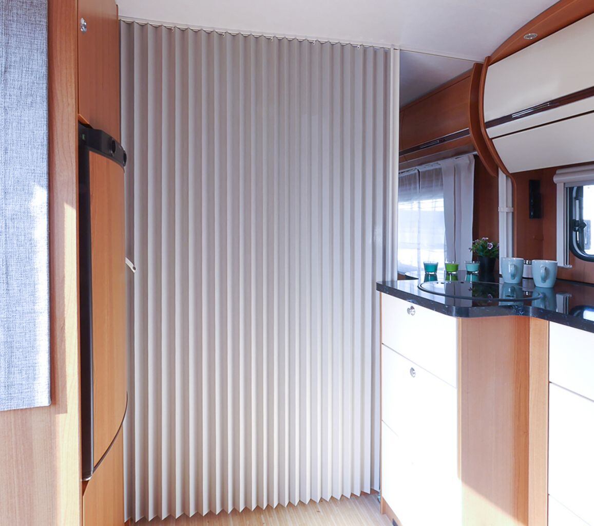 Flexibilní dělicí stěna REMIformMultifunkční dělicí příčka REMIform je ideální volbou pro rozdělení obytných částí vašeho vozidla na samostatné zóny. Poskytuje více soukromí a zlepšuje pocit prostoru během cestování. Jde o nejjednodušší způsob rozdělení prostoru, který je v karavanech i obytných vozech běžný. Vhodné i pro malé prostory. Příčka je lehká a má tichý provoz. Připevňování je flexibilní a příčku je možné snadno zkrátit do požadované délky. Plisovaný materiál, manipulační úchyt i vodící kolejnice mají krémovou barvu (RAL 9001).REMIform I má uzavření prostoru řešeno přes popruh se zamykacím patentem, kdežto REMIform II disponuje systémem komfortního uzavření přes plastový uzávěr.Klíčové vlastnosti prostorové příčky REMIform:Přizpůsobivost. Snadné přizpůsobení individuálním rozměrům interiéru.Elegantní design. Plisovaná látka, řídítka a vodicí kolejnice v krémově bílé barvě (RAL 9001) dokonale ladí s interiérem.Prostorová úspornost. Příčku lze kompaktně zasunout a uložit pomocí suchého zipu, což šetří místo.Snadná manipulace. Intuitivní ovládání umožňuje rychlé a pohodlné rozdělení prostoru.Pocit soukromí. Jasně odděluje obytné prostory pro optimální komfort na cestách.Parametry prostorové příčky REMIform:barva: krémově bílátyp:šířka:výška:hloubka:hmotnost:rozměry balení (V × Š × H):REMIform I1500 mm1900 mm48 mm2,4 kg190 × 10 × 10 cmREMIform II1500 mm1900 mm45,5 mm2,4 kg190 × 16 × 15 cm