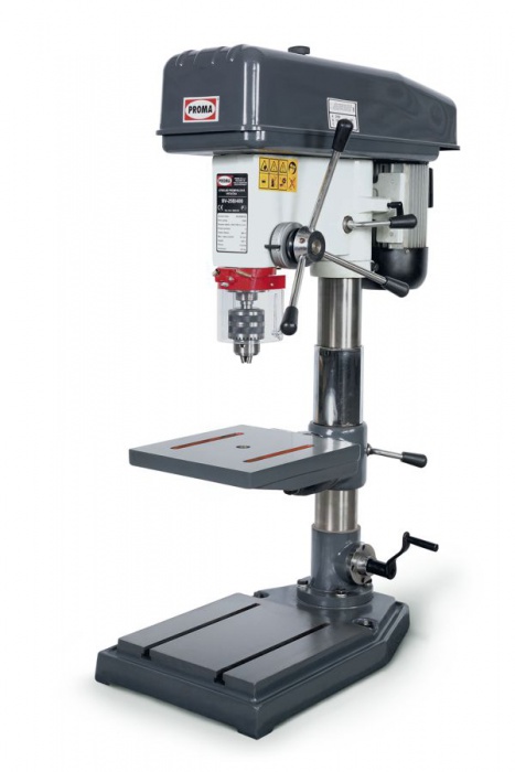 Další výhodou této vrtačky je reverzní spínač pro automatickou změnu otáček při závitování. Tato funkce umožňuje soustředit se na práci, aniž byste se museli starat o manuální nastavení. Navíc, pokud máte potřebu ukotvit stroj pro stabilnější a bezpečnější práci, PROMA BZ-25B/400 to umožňuje.