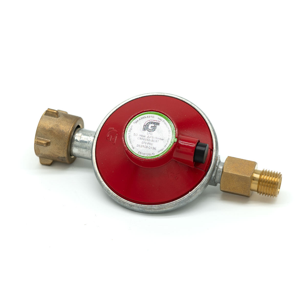 Regulátor tlaku 50 mbar Meva se závitem G 1/4″ LHRegulátor tlaku Meva s výstupním tlakem 50 mbar je určen pro připojení nízkotlakých plynových spotřebičů na LPG z lahví o objemu 5, 10 nebo 33 kg. Je vybaven standardním závitem G 1/4″ LH, který se běžně používá u plynových vařičů a grilů.Přestože se v České republice nejčastěji používá tlak 30 mbar, tento model je ideální pro zařízení, která vyžadují tlak 50 mbar – například některé typy vařičů nebo topidel. Kompaktní rozměry a spolehlivý výkon dělají z tohoto regulátoru ideální volbu pro použití v kempu, na zahradě i doma.Klíčové vlastnosti regulátoru tlaku Meva:Výstupní tlak 50 mbar je vhodný pro specifická LPG zařízení.Standardní závit G 1/4″ LH.Průtok 1,5 kg/h je ideální pro vaření i topení.Určeno pro připojení k 5, 10 a 33 kg PB lahvím.Jednoduchá a bezpečná instalace přes plynovou hadici.Parametry regulátoru tlaku Meva:provozní tlak: 50 mbarprůtok: 1,5 kg/hpřipojení: G 1/4 (levý)rozměr: 110 x 65 x 30 mmhmotnost: 0,3 kg