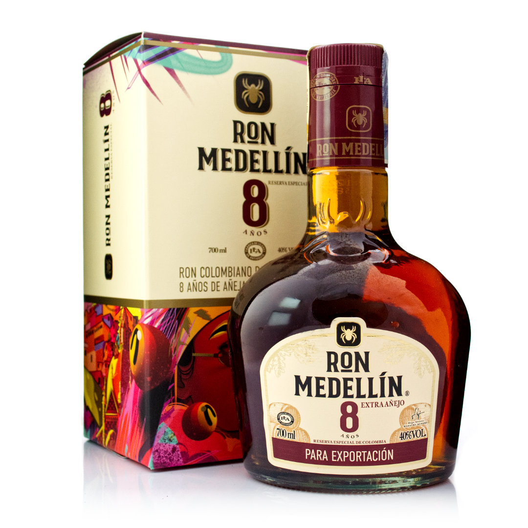 Rum Ron Medellín 12 je prémiový kolumbijský rum z produkce Fábrica de Licores de Antioquia (FLA), palírny s více než stoletou tradicí sídlící v regionu Antioquia. Tento rum je vyroben z melasy prvotřídní cukrové třtiny, destilován moderními metodami a poté zraje 12 let v sudech z amerického dubu, což mu dodává bohatší a komplexnější charakter oproti mladším variantám. S obsahem alkoholu 40 % zůstává věrný filozofii značky – nabízí čistou chuť bez přidaných cukrů či umělých přísad, což z něj činí autentický představitel kolumbijských rumů.