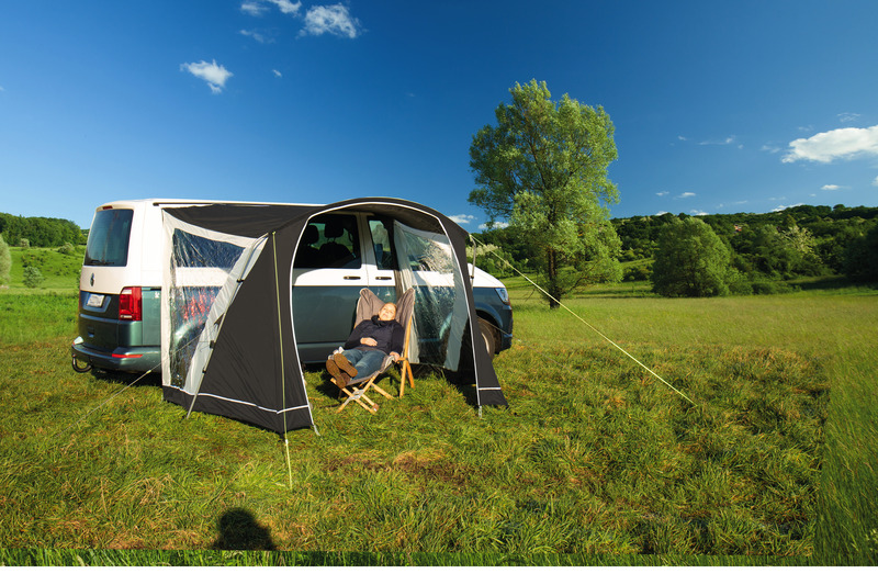 Praktická sluneční clona z kolekce RE-TENT, dostupná ve třech velikostech vhodná pro karavan.
