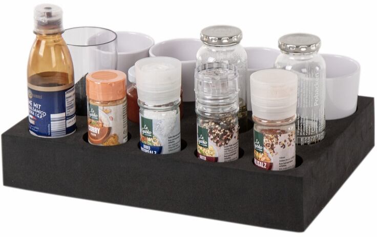 Chrániče skleniček proti rozbití za jízdySada držáků sklenic Camp4 se skládá z 12 velkých a 5 malých držáků, které jsou vhodné pro upevnění skleniček nebo hrnků o různých velikostech v zásuvkách nebo poličkách kuchyňské linky ve vašem karavanu nebo obytném voze. Chrániče přilepíte samolepící dolní stranou k podložce a díky pěnovému materiálu se uložené sklenice nerozbijí během jízdy.Klíčové vlastnosti sady držáků sklenic Camp4:Pěnové držáky zabezpečí skleničky a hrnky během jízdy.Rozsah dodávky:12 velkých chráničů,5 malých chráničů. Parametry sady držáků sklenic Camp4:velké držáky:rozměry: 12,5 x 12,5 x 4 cmhmotnost: 9,5 gmalé držáky:rozměry: 8,7 x 8,7 x 4 cmhmotnost: 2,5 g
