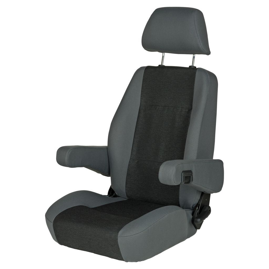 Komfort pro náročné řidiče v sedačce Pilot Sedačky Sportscraft Pilot jsou výbornou volbou pro komfortní sezení při řízení obytných aut, dodávek či lodí. Kombinace funkčnosti, pohodlí a vysoce kvalitních materiálů použitých při výrobě těchto sedadel uspokojí i ty nejnáročnější řidiče. Sedačky Sportscraft Pilot je možné při montáži do vybraných vozidel dovybavit otočnou konzolí, která umožňuje jejich otočení od palubní desky směrem do obytného prostoru vestavby a využití například u jídelního stolu či pro večerní posezení u televize. Vlastnosti sedaček Sportscraft Pilot: Ergonomicky tvarované podle nejnovějších vědeckých poznatků. Stylový design. Vyrobeno za použití nejmodernějších technologií. Výplň ze studené pěny. Ocelový rám (certifikovaný TÜV-Rheinland 20 G). Nastavitelné opěradlo. Dostupné ve verzi s pevnou nebo výškově nastavitelnou opěrkou hlavy. Výškově nastavitelná opěradla na ruce vyrobená ze studené pěny s hliníkovým rámem. Prémiové a nadčasové velurové čalounění. Parametry: barva: černá / šedá materiál textilu: 100% polyester