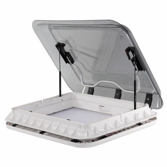 Okno na střechu karavanu nebo obytného vozu MPK Model 46, 400 × 400 mm se síťkou a roletouStřešní okno MPK Model 46, 400 × 400 mm, síťka a roleta, šedý rám s bílým krytem. Vnější kryt s rozměry 56 × 56 cm má velký přesah přes rám. Okno se otevírá pomocí vzpěr tlakem nahoru. Disponuje nucenou ventilací, která zabraňuje tvoření vlhkosti v interiéru. Rám obsahuje síťku proti hmyzu a zatemňovací roletu. Výška střešního okna nad střechou je pouhých 92 mm.Klíčové vlastnosti střešního okna MPK Model 46, 400 x 400 mm:Vnější kryt s velkým přesahem má rozměry 56 × 56 cm.Má ráfek na ochranu proti sněhu a vodě.Okno MPK je vybaveno moskytiérou a zatemňovací roletou.Otevírá se pomocí teleskopických výsuvných ramen s aretací.Parametry střešního okna MPK Model 46, 400 x 400 mm:rozměry výřezu: 400 × 400 mmmontážní výška: 92 mmtloušťka střechy: 24–56 mmrozměry krytu: 56 × 56 cmbarva krytu: bílábarva rámu: šedánucená ventilace: anorozměry balení: 59 × 57,5 × 15,5 cmhmotnost: 2,9 kg