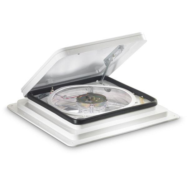 Ventilátor na střechu Dometic Fan Tastic Vent 3350Střešní ventilátor Dometic Fan Tastic Vent 3350 se třístupňovým vysoce výkonným motorem a odnímatelnou sítí proti hmyzu. Průsvitné lopatky ventilátoru přispívají k dobrému průchodu světla. Ventilátor může být vybaven čidlem deště, které zajistí sklopení krytu při dešti.Dodávaný objem vzduchu:1. stupeň: 13,5 m³/min, příkon 23 W2. stupeň: 18,5 m³/min, příkon 28 W3. stupeň: 26,5 m³/min, příkon 36 WKlíčové vlastnosti střešního ventilátoru Dometic Fan Tastic Vent 3350:Disponuje odnímatelnou sítí proti hmyzu.Průsvitné lopatky ventilátoru přispívají k dobrému průchodu světla.Ventilátor umožňuje dovybavení čidlem deště, které automaticky sklopí kryt při dešti.Parametry střešního ventilátoru Dometic Fan Tastic Vent 3350:rozměry výřezu: 400 × 400 mmvýška nad střechou: 125 mmpro tloušťku střechy: 27–65 mmbarva: bílámateriál: ABS, Makrolonrozměry (Š × D): 47 × 47 cmrozměry balení: 48 × 48 × 22 cmhmotnost: 5,5 kg