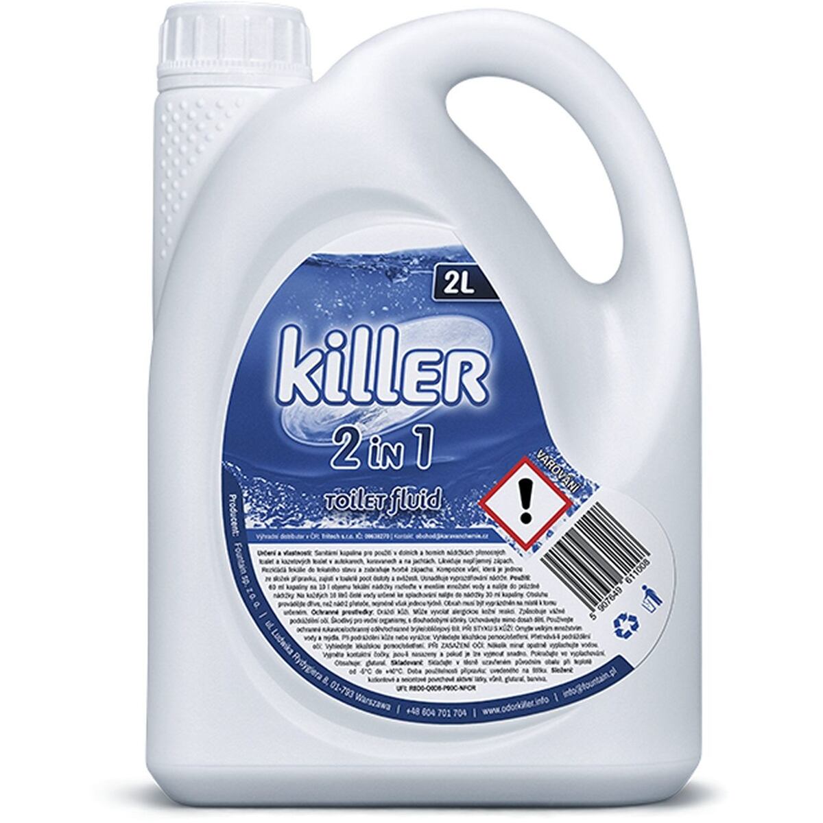 Rozkladová a sanitární chemieTekutá WC chemie Tritech Killer 2v1 je univerzální prostředek pro mobilní a suché toalety, vhodný pro použití do spodní kazety i splachovací nádrže. Přípravek je účinný při teplotách od 0° do +40 °C, při průměrné teplotě 25°C účinkuje přibližně 10 dnů. Prostředek v modré barvě snižuje tvorbu plynů, usazenin a nepříjemného zápachu, urychluje rozklad odpadu, příjemně voní, brání usazování obsahu na stěnách nádrže a rozvoji bakterií.Klíčové vlastnosti tekuté WC chemie Tritech Killer 2v1:Prostředek je vhodný do mobilních a suchých toalet.Aplikuje se do spodní kazety i splachovací nádrže.Účinkuje cca 10 dnů při průměrné teplotě 25°C.Brání usazování obsahu na stěnách nádrže a rozvoji bakterií, omezuje tvorbu plynů, usazenin a nepříjemného zápachu, urychluje rozklad odpadu, příjemně voní.Dávkování:splachovací nádrž: 50 ml přípravkuodpadní kazeta: 50ml přípravkuParametry tekuté WC chemie Tritech Killer 2v1:barva přípravku: modráúčinnost: cca 10 dnů (při průměrné teplotě 25°C)účinkuje: od 0° do +40 °Cobjem: 2 litry nebo 5 litrů