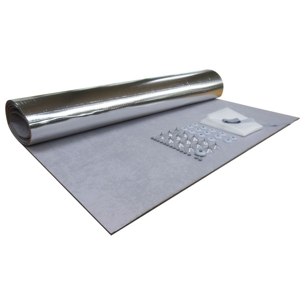 Sada termoizolačního materiálu HindermannSada termomateriálu a jeho příslušenství pro interiérové kutilské projekty. Izolant vyrobený z třívrstvého, cca. 8 mm silného ISO sendvičového materiálu (svrchní materiál 100 % polyester, spodní materiál 100 % polyuretan) se osvědčil při výrobě tepelných závěsů. Svépomocí si tak můžete udělat například okenní rohože a tepelnou izolaci pod spací plochou nebo kryty. Materiál lze řezat na jakoukoli potřebnou velikost nůžkami nebo nožem. Dodávka obsahuje 15 velkých přísavek, každá o průměru 40 mm, 20 m světle šedé polyesterové lemovací pásky a fólie pro vytvoření šablony.