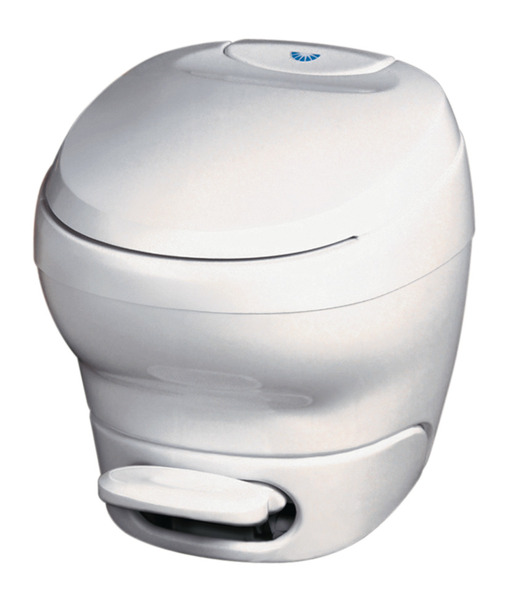 Splachovací toaleta se sladkou vodou, která je trvale namontována na podlaze. Splachovací voda je do něj přiváděna nezávislým tlakovým vodovodním potrubím. Výkaly se přivádějí do pevné nádrže, která může být umístěna na podlaze nebo pod ní. Odpad se vyhazuje zvenku vozidla. Pohodlné ovládání nožním pedálem, rovnoměrné a účinné celoplošné splachování, moderní design a hladký povrch. Jednoduchá instalace a snadná manipulace. Možnost pro kempinkovou toaletu: instalační materiál č. položky 66215/66216/66217.