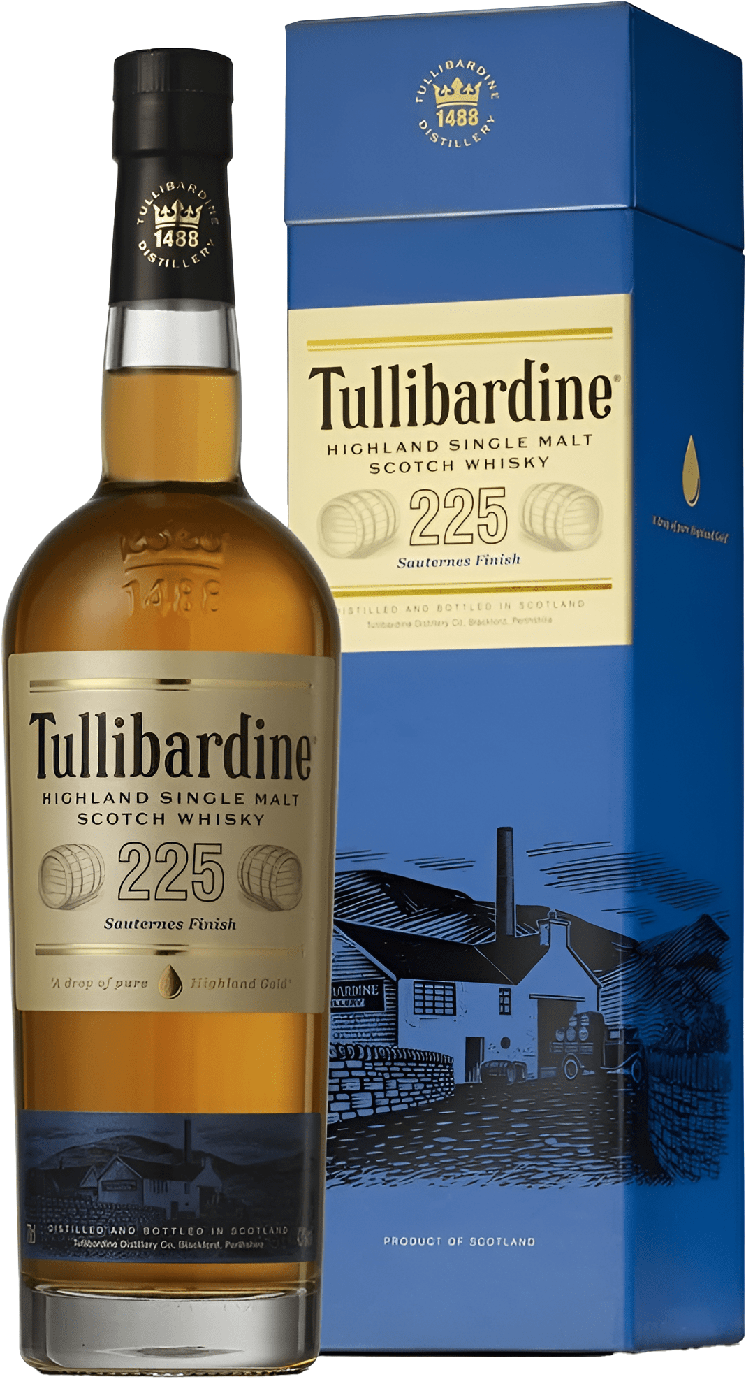 Tullibardine Sovereign je lahodná krémová single malt whisky, ozdobena zlatou dekorací, která před uložením do lahví dozrávala v sudech od bourbonu. Od tohoto „douškem z Vysočiny očekávejte množství vanilky a koření.