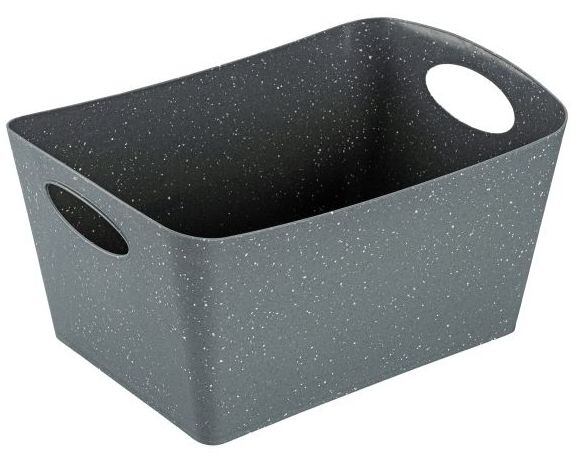 Víceúčelová plastová přepravkaÚložný box Koziol Boxxx M využijete v domácnosti, v dílně i při cestování obytným vozem nebo karavanem. Hodí se například k třídění prádla, na nářadí, hračky, na ukládání konzerv a sklenic apod. Univerzálně použitelný obdélníkový tvar je ideální pro všestranné použití na policích a ve skříních. Je navržen tak, aby bylo možné přesně vložit dva tyto boxy do dalšího většího boxu. Boxxx M je vyroben ze 100% recyklovaného plastu a celulózy.Klíčové vlastnosti úložného boxu Koziol Boxxx M:Multifunkční stohovatelný úložný box s praktickými madly pro jednoduché přenášení.Ideální do kanceláře, koupelny, kuchyně, dílny, garáže a dětského pokoje nebo na cesty.Vyroben z robustního a odolného 100% recyklovaného plastu.Parametry úložného boxu Koziol Boxxx M:barva: šedá, béžovámateriál: 100% recyklovaný polypropylen, 100% CO₂-neutrálníobjem: 3,5 lšířka: 29,7 cmvýška: 15 cmhloubka: 20,3 cmhmotnost: 210 gvelikost balení: 30 x 25 x 20,3 cm