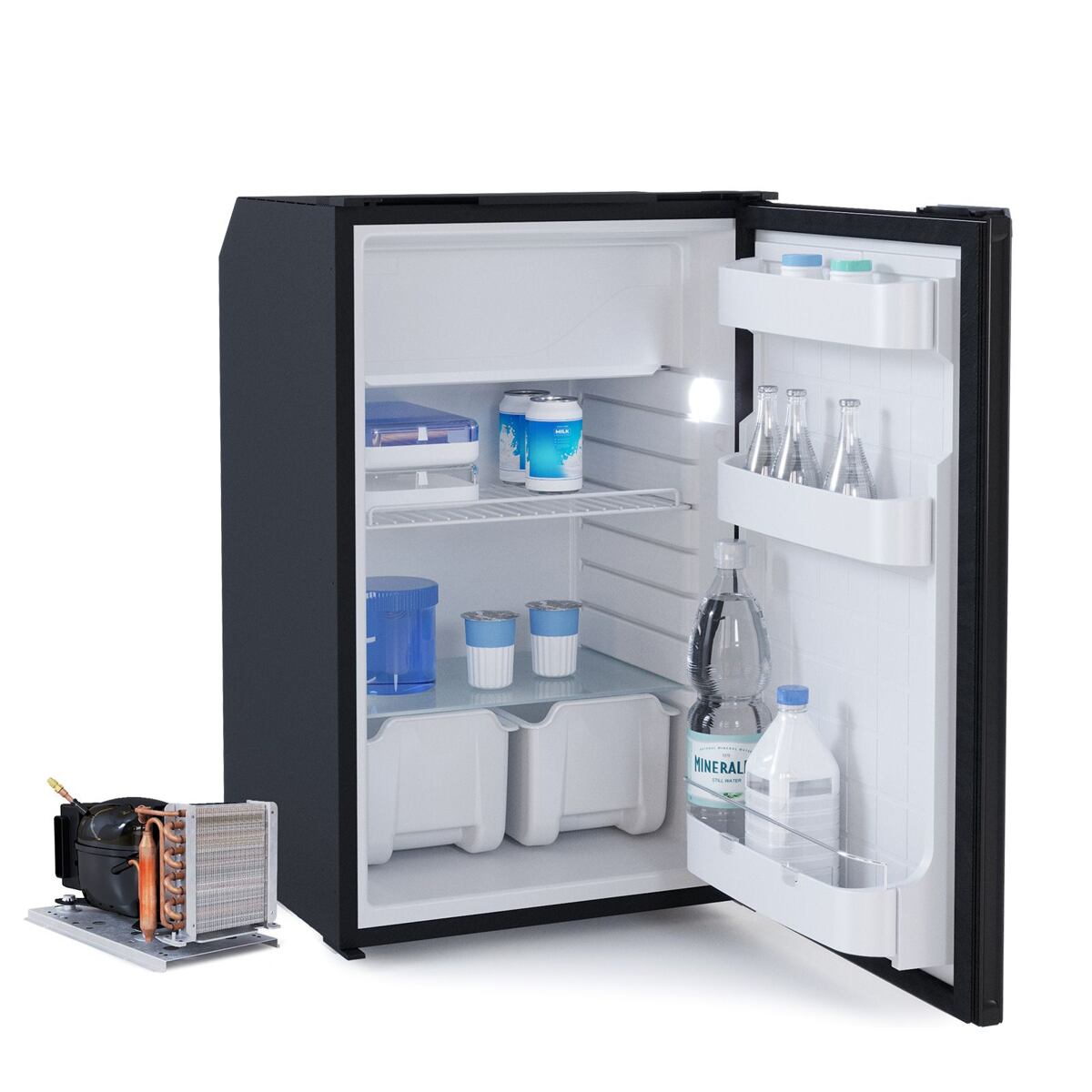 Vestavná autolednice s mrazícím boxemVestavnou chladničku Vitrifrigo C115i s vestavěnou chladící jednotkou využijete na Vašich cestách obytným vozem nebo karavanem. Lednička s černými dveřmi, o celkovém objemu 115 litrů, je vybavena vnitřním mrazákem s objemem 17,1 litrů.Vysoce účinné chlazení kompresorové lednice je zajištěno hermeticky uzavřeným kompresorem SECOP BD35F s napájením na 12 nebo 24V a s ochranou proti hlubokému vybití baterie. Díky tomu má chladnička nízkou spotřebu energie, rychle ochladí uložené potraviny a nápoje a také dosahuje nižších teplot i při náklonu lednice.Klíčové výhody vestavné lednice Vitrifrigo C115i CHR:Dveře chladničky jsou vybaveny chytrým systémem CHROMELOCK s uzavíráním AIRLOCK, který zajišťuje pevné uzavření lednice.Možnost změnit směr otevírání dveří.Ventilační pozice kliky, která zaaretuje dveře pootevřené v době, kdy je chladnička mimo provoz.Vnitřní LED osvětlení pro větší pohodlí.Čelní panel chladničky Vitrifrigo C115i je možné odejmout a vyměnit za jiný, odpovídající designu kuchyně.Těsnění dveří lze pro snadnější údržbu sundat či vyměnit.Panel dveří v černém provedení je matný, jemný na dotek a nezanechává na sobě otisky prstů.Napájení je možné ze stejnosměrného napětí 12 i 24 V.Parametry lednice s mrazákem Vitrifrigo C115i CHR:celkový objem: 115 lobjem mrazící přihrádky: 17,1 lrozměry mrazící přihrádky (H × Š × V): 315 × 420 × 110 cmnapájecí napětí: 12 nebo 24 Vkompresor: SECOP BD35F, pevná instalacenastavení teploty: mechanickým otočným termostatemjmenovitý příkon: 45 Wizolace: polyuretanová pěna bezfreonovározměry vnější (Š × H × V): 525 × 562 × 766 mmhmotnost: cca 21,2 kgcertifikace: CE, homologace Instalace s montážním rámečkem:Unikátní montážní rámeček umožňuje zabudování chladničky se dveřmi zarovnanými s okolní plochou, nebo se dveřmi předsazenými o tloušťku dveří před okolní plochu.Rámeček není součástí dodávky, nutno objednat samostatně (najdete pod záložkou Příslušenství).