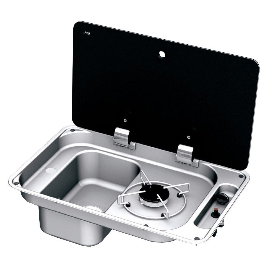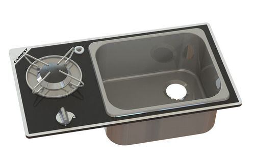 Kombinace vařiče a dřezuVestavná varná plynová deska s dřezem Carbest se stane stylovým a praktickým vybavením Vaší kuchyně v obytném voze nebo karavanu. Je osazena dvěma hořáky s celkovým výkonem 2,8 kW, bezpečnostním zapalováním a ovládáním v přední části. Kulatý nerezový dřez je umístěn na levé straně. Desku v černé barvě tvoří bezpečnostní sklo.Klíčové vlastnosti vestavné varné desky s dřezem Carbest:Stylové provedení v kombinaci skla, nerez oceli a černé barvy.Deska z kvalitního bezpečnostního skla tl. 8 mm.Bezpečnostní pojistka zapalování.Dva výkonné plynové hořáky.Dřez s otvory pro odtok. Armatura není součástí dodávky, nutno objednat samostatně – najdete pod záložkou Příslušenství.Parametry vestavné varné desky s dřezem Carbest:počet hořáků: 2výkon: 1x 1,8 kW, 1x 1,0 kWtlak: 30 mbarspotřeba plynu: 204g/hzapalování: manuální, s bezpečnostní pojistkouinstalační hloubka: 400 mminstalační šířka: 590 mmhloubka: 420 mmšířka: 600 mmvýška: 65 mmhmotnost: 6,3 kgbarva desky: černámateriály: bezpečnostní sklo tl. 8 mm, nerez ocel