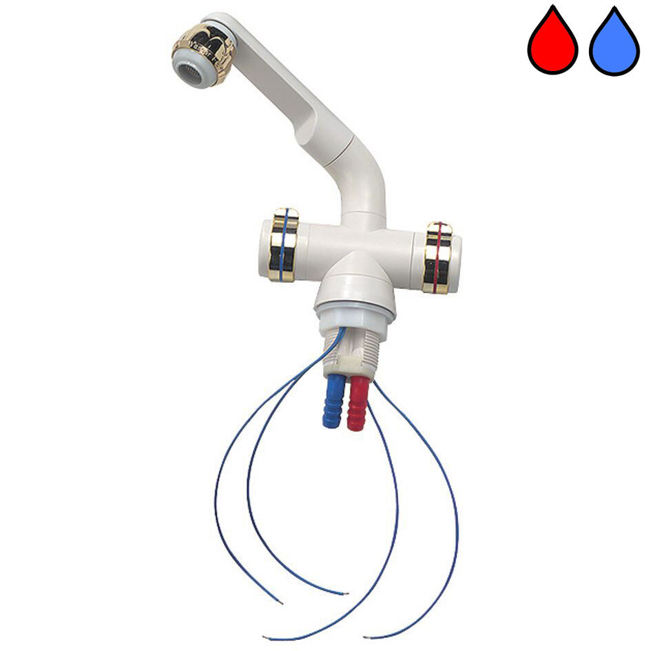 Vodovodní kohoutek BarwigSměšovací vodovodní baterie Barwig s otočným ramenem do karavanu. Na teplou i studenou vodu a se dvěma mikrospínači pro každý přívod vody zvlášť.Klíčové vlastnosti vodovodní baterie Barwig Compact:má otočné rameno do karavanu.Kohoutek Barwig je vybaven 2 mikrospínači pro regulaci teplé a studené vody.Parametry vodovodní baterie Barwig Compact:montážní otvor: 34 mmrozměry balení: 36,1 × 16,4 × 5,1 cmtlak: 3 barbarva: zlatá / chrom / bíláváha: 244 gtyp připojení: BarwigUpozornění:Nejste si jisti výběrem vhodného připojení Vaší kuchyňské či koupelnové baterie v karavanu? Podívejte se na náš přehled typů připojení baterií v karavanech a obytných vozech.