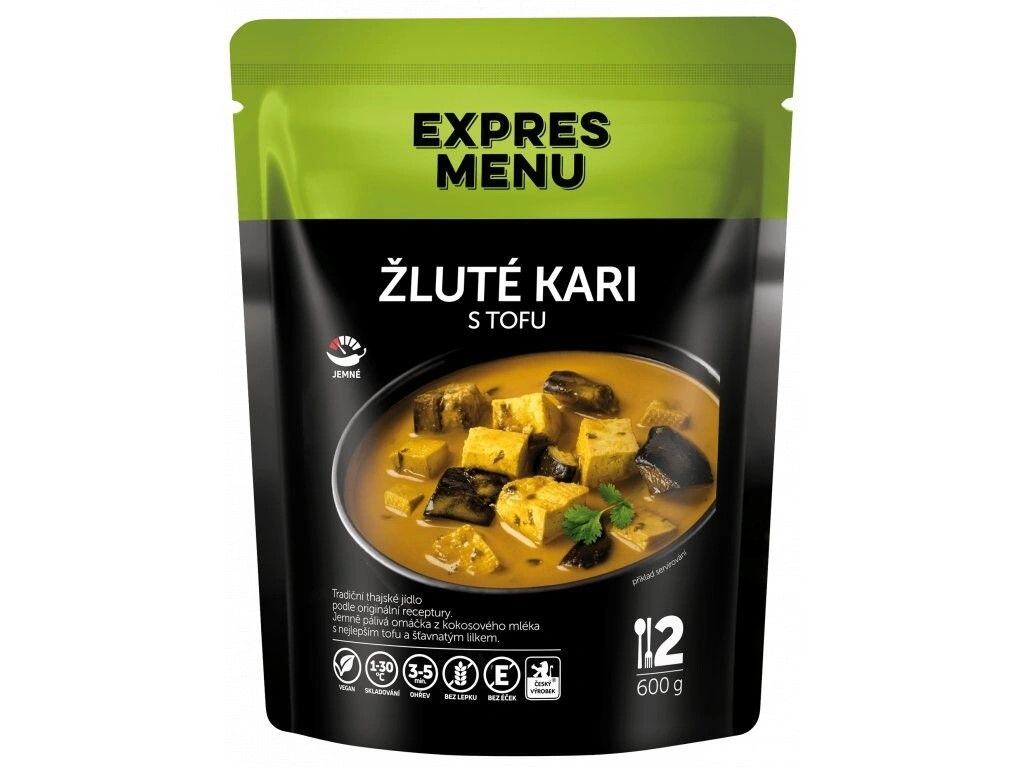 Zbojnické kuře – pochoutka připravená k rychlému servírováníChystáte-li se na cestu, nezapomeňte si s sebou přibalit zbojnické kuře, které obsahuje 2 porce. Tento vydatný, trvanlivý pokrm s kousky kuřecího masa, cibulí, slaninou, paprikovou klobásou a tvarohem si připravíte snadno a rychle. Servírovat lze již během několika minut.Hotový pokrm neobsahuje lepek a éčka.Ideální volba pokud cestujete karavanem, chystáte se kempovat nebo stanovat.Vlastnosti zbojnického kuřete od EXPRES MENUbalení: 600 g (2 porce)složení bez lepku a bez éčekhotové sterilované jídlo od české rodinné firmy z Trutnovasnadná přípravaideální pro přípravu na cestáchSloženíkuřecí maso (33 %), vepřová klobása (vepř. maso 86 %, voda, brambor. škrob, sůl, vepřový protein, koření), drůbeží vývar (voda, drůbeží maso a kosti), cibule, uzená slanina (vepř. sádlo), rýžová mouka, kukuřičná mouka, tvaroh, rajčatový protlak (voda, rajčatový protlak, sůl), řepkový olej, sůl kamenná, paprika mletá, pepřPříprava jídlaZbojnické kuře od EXPRES MENU můžete připravit třemi způsoby:Sáček s jídlem vložte do mikrovlnné trouby a ohřívejte zhruba 2 až 3 minuty při výkonu300 W nebo dokud nebude jídlo teplé. Při ohřevu buďte opatrní, delší doba ohřevu může vést k deformaci obalu.V další variantě stačí vyprázdnit obsah sáčku na talíř a ohřívejte v mikrovlnné troubě zhruba 2 minuty.Pokud nemáte k dispozici mikrovlnnou troubu, stačí sáčky vložit do hrnce s vařící vodou zhruba na 10 minut. Před podáváním jídla promačkejte.SkladováníVýrobek skladujte při teplotě od +1 °C do +30 °C. Po otevření skladujte v chladničce a spotřebujte do 48 hodin.Datum spotřebyMinimální trvanlivost je uvedena na obalu. Obvyklé datum spotřeby jsou 2 roky.Nutriční hodnoty na 100 g:Energetická hodnota:304 kJ / 72 kcalTuky:1,9 gNasycené mastné kyseliny: 0,1 gSacharidy:6,2 gz toho cukry:0,7 gBílkoviny:8,5 gVláknina:1,7 gSůl:1 g